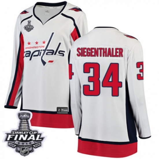 Women's Washington Capitals #34 Jonas Siegenthaler Fanatics Branded White Away Breakaway 2018 Stanley Cup Final NHL Jersey