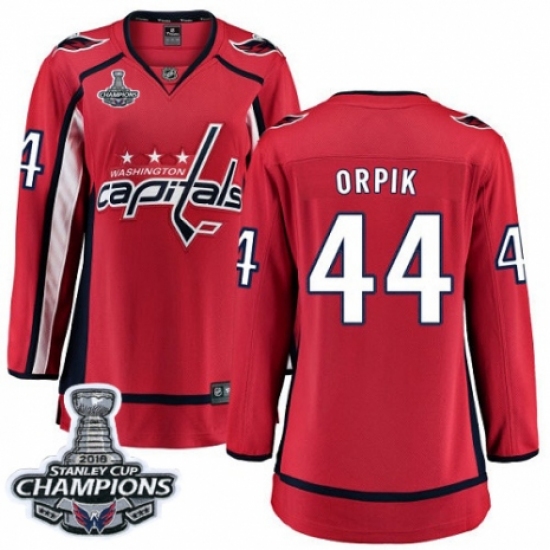 >Women's Washington Capitals #44 Brooks Orpik Fanatics Branded Red Home Breakaway 2018 Stanley Cup Final Champions NHL Jersey