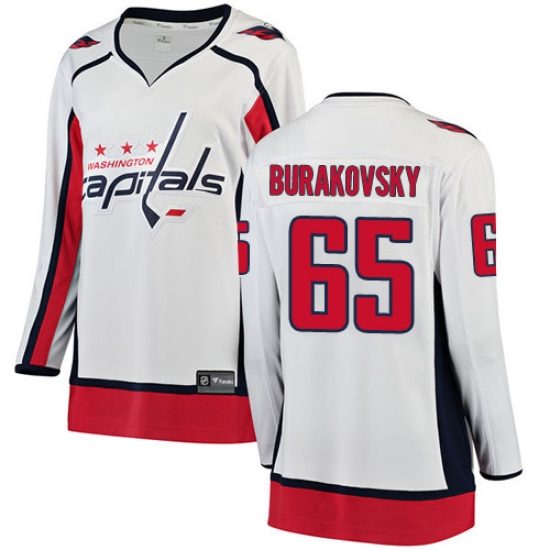 Home>NHL>Washington Capitals>Andre Burakovsky>Women's Washington Capitals #65 Andre Burakovsky Fanatics Branded White Away Breakaway NHL Jersey
