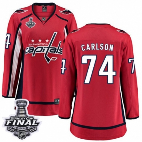 Women's Washington Capitals #74 John Carlson Fanatics Branded Red Home Breakaway 2018 Stanley Cup Final NHL Jersey