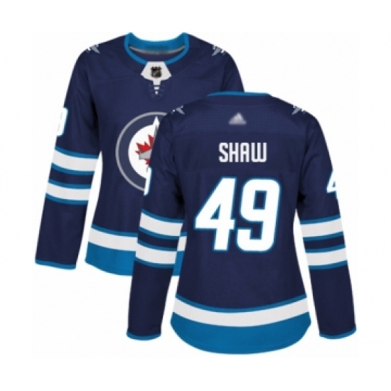 >Women's Winnipeg Jets #49 Logan Shaw Authentic Navy Blue Home Hockey Jersey