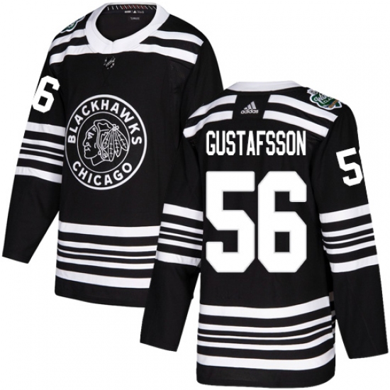 Youth Adidas Chicago Blackhawks #56 Erik Gustafsson Authentic Black 2019 Winter Classic NHL Jersey