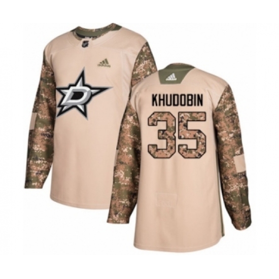 Men's Adidas Dallas Stars #35 Anton Khudobin Authentic Camo Veterans Day Practice NHL Jersey