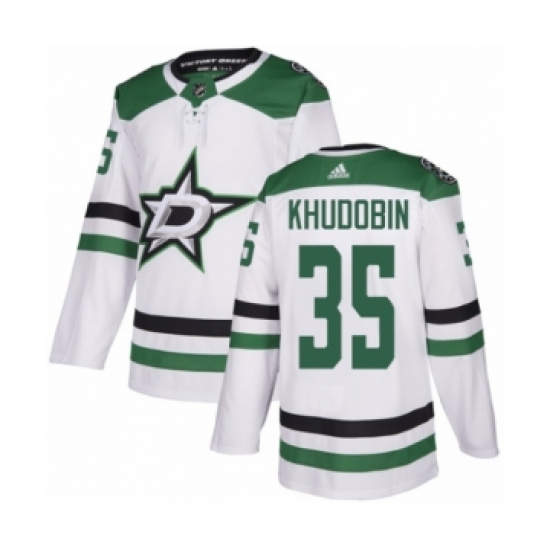 >Youth Adidas Dallas Stars #35 Anton Khudobin Authentic White Away NHL Jersey