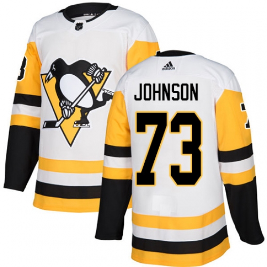 Men's Pittsburgh Penguins #73 Jack Johnson Authentic White Away Fanatics Branded Breakaway NHL Jersey