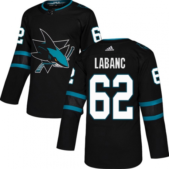 >Youth Adidas San Jose Sharks #62 Kevin Labanc Premier Black Alternate NHL Jersey