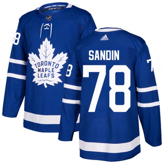 >Youth Adidas Toronto Maple Leafs #78 Rasmus Sandin Authentic Royal Blue Home NHL Jersey