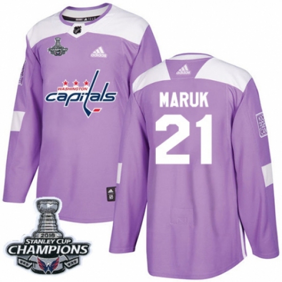 Youth Adidas Washington Capitals #21 Dennis Maruk Authentic Purple Fights Cancer Practice 2018 Stanley Cup Final Champions NHL Jersey