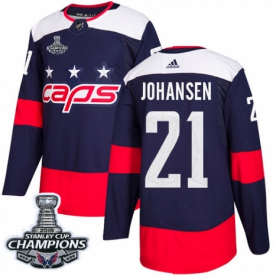 >Youth Adidas Washington Capitals #21 Lucas Johansen Authentic Navy Blue 2018 Stadium Series 2018 Stanley Cup Final Champions NHL Jersey