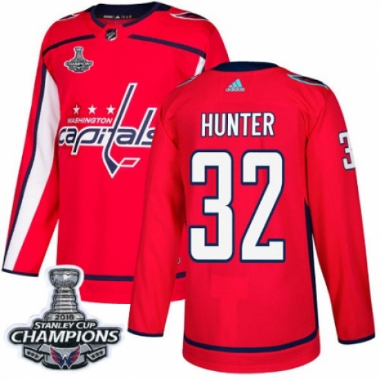 Men's Adidas Washington Capitals #32 Dale Hunter Authentic Red Home 2018 Stanley Cup Final Champions NHL Jersey