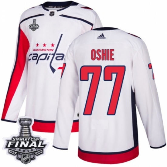 Youth Adidas Washington Capitals #77 T.J. Oshie Authentic White Away 2018 Stanley Cup Final NHL Jersey