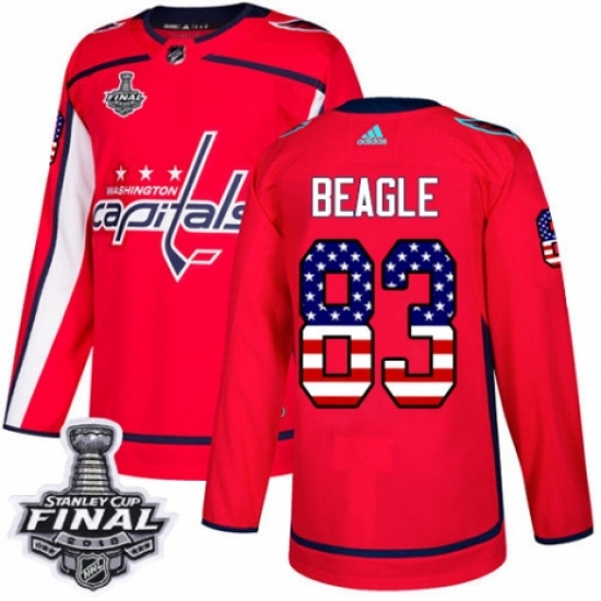Men's Adidas Washington Capitals #83 Jay Beagle Authentic Red Home 2018 Stanley Cup Final NHL Jersey