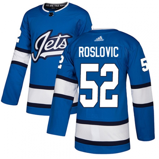Men's Adidas Winnipeg Jets #52 Jack Roslovic Authentic Blue Alternate NHL Jersey