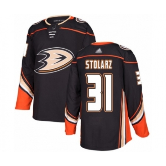 >Youth Anaheim Ducks #31 Anthony Stolarz Authentic Black Home Hockey Jersey