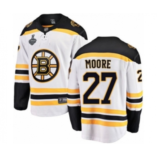 Youth Boston Bruins #27 John Moore Authentic White Away Fanatics Branded Breakaway 2019 Stanley Cup Final Bound Hockey Jersey