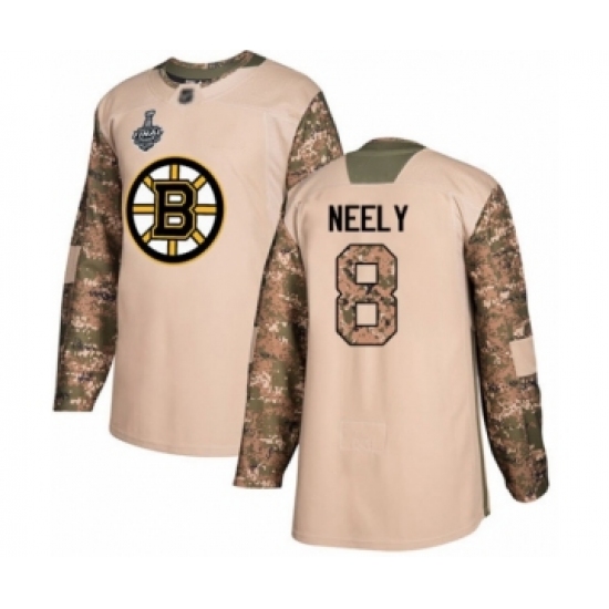 >Youth Boston Bruins #8 Cam Neely Authentic Camo Veterans Day Practice 2019 Stanley Cup Final Bound Hockey Jersey