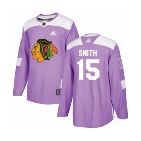 Youth Chicago Blackhawks #15 Zack Smith Authentic Purple Fights Cancer Practice Hockey Jersey