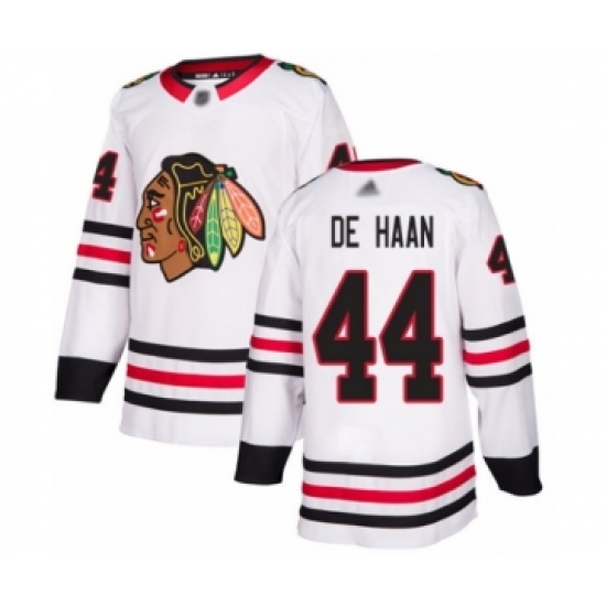 Men's Chicago Blackhawks #44 Calvin De Haan Authentic White Away Fanatics Branded Breakaway Hockey Jersey