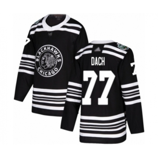 >Youth Chicago Blackhawks #77 Kirby Dach Authentic Black 2019 Winter Classic Hockey Jersey