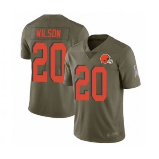 >Youth Cleveland Browns #20 Howard Wilson Limited Olive 2017 Salute to Service Football Jersey