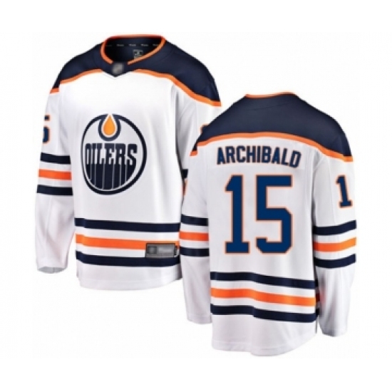 Youth Edmonton Oilers #15 Josh Archibald Authentic White Away Fanatics Branded Breakaway Hockey Jersey
