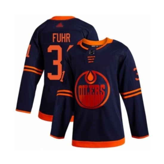 Men's Edmonton Oilers #31 Grant Fuhr Authentic Navy Blue Alternate Hockey Jersey