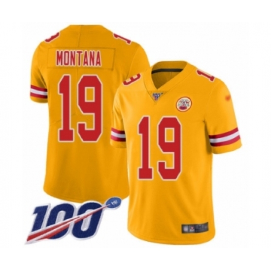 >Youth Kansas City Chiefs #19 Joe Montana Limited Gold Inverted Legend 100th Season Football Jersey