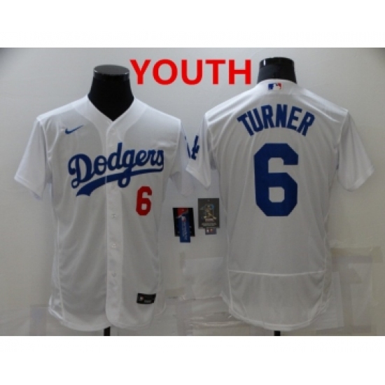 >Youth Los Angeles Dodgers #6 Trea Turner White Stitched MLB Flex Base Nike Jersey