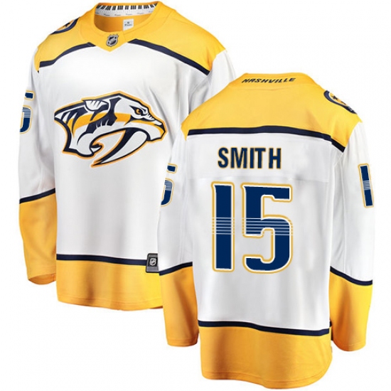 Home>NHL>Nashville Predators>Craig Smith>Youth Nashville Predators #15 Craig Smith Fanatics Branded White Away Breakaway NHL Jersey