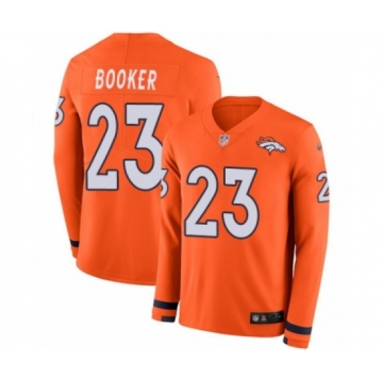 Men's Nike Denver Broncos #23 Devontae Booker Limited Orange Therma Long Sleeve NFL Jersey
