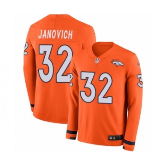 >Youth Nike Denver Broncos #32 Andy Janovich Limited Orange Therma Long Sleeve NFL Jersey