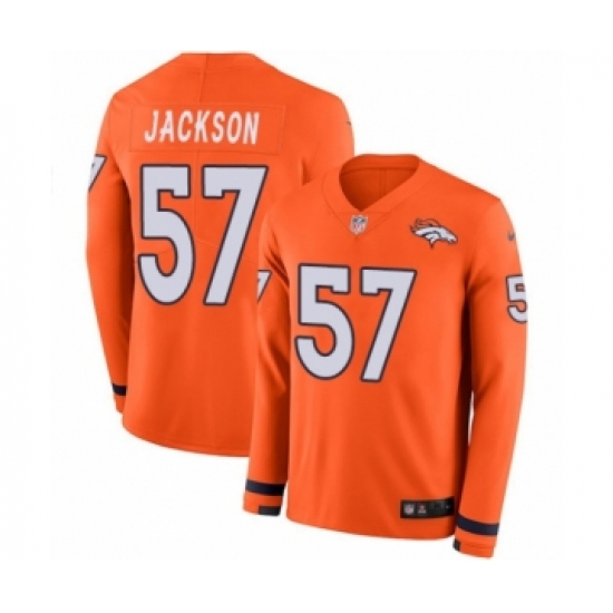 >Youth Nike Denver Broncos #57 Tom Jackson Limited Orange Therma Long Sleeve NFL Jersey