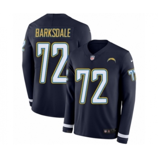>Youth Nike Los Angeles Chargers #72 Joe Barksdale Limited Navy Blue Therma Long Sleeve NFL Jersey