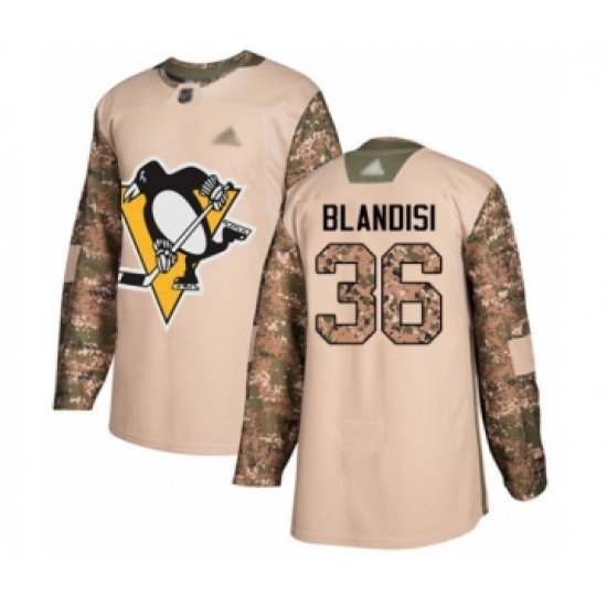 >Youth Pittsburgh Penguins #36 Joseph Blandisi Authentic Camo Veterans Day Practice Hockey Jersey