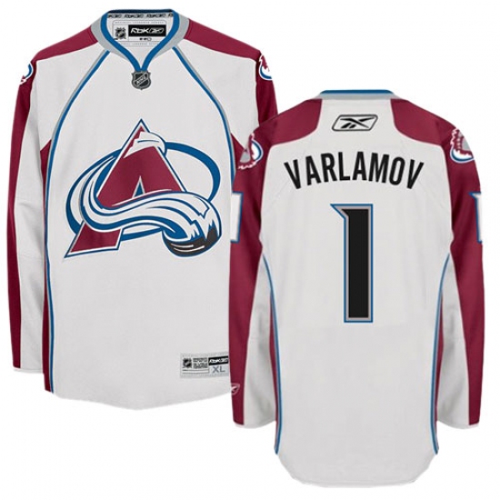 Home>NHL>Colorado Avalanche>Semyon Varlamov>Youth Reebok Colorado Avalanche #1 Semyon Varlamov Authentic White Away NHL Jersey