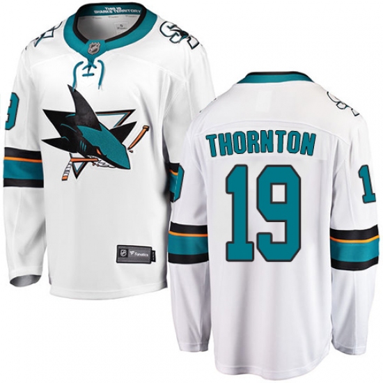 Home>NHL>San Jose Sharks>Joe Thornton>Youth San Jose Sharks #19 Joe Thornton Fanatics Branded White Away Breakaway NHL Jersey