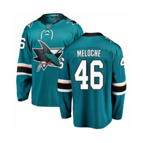 Youth San Jose Sharks #46 Nicolas Meloche Fanatics Branded Teal Green Home Breakaway Hockey Jersey