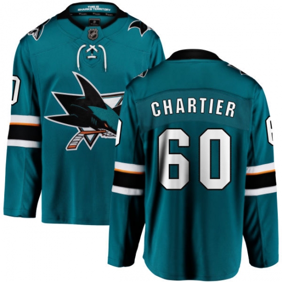 Home>NHL>San Jose Sharks>Rourke Chartier>Youth San Jose Sharks #60 Rourke Chartier Fanatics Branded Teal Green Home Breakaway NHL Jersey