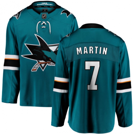 Home>NHL>San Jose Sharks>Paul Martin>Youth San Jose Sharks #7 Paul Martin Fanatics Branded Teal Green Home Breakaway NHL Jersey