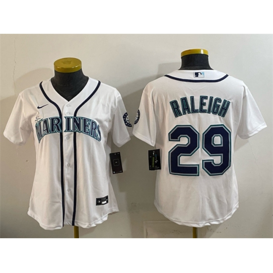 >Youth Seattle Mariners #29 Cal Raleigh White Cool Base Stitched Baseball Jersey