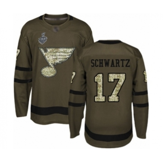>Youth St. Louis Blues #17 Jaden Schwartz Authentic Green Salute to Service 2019 Stanley Cup Final Bound Hockey Jersey