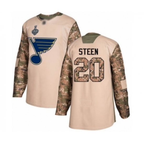 Youth St. Louis Blues #20 Alexander Steen Authentic Camo Veterans Day Practice 2019 Stanley Cup Final Bound Hockey Jersey