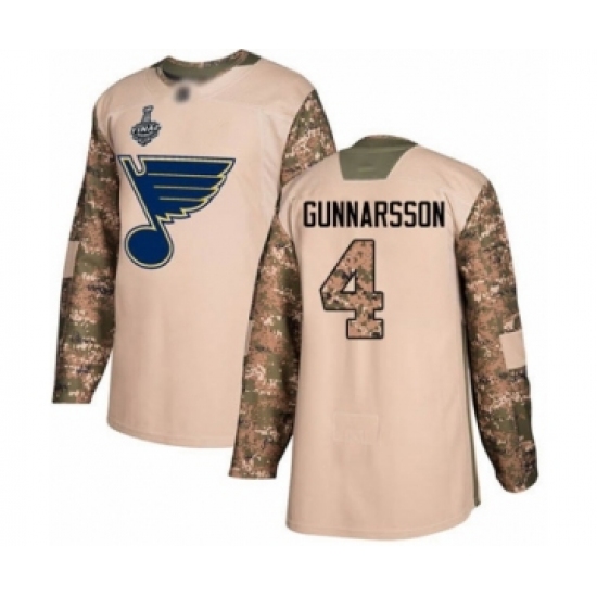 >Youth St. Louis Blues #4 Carl Gunnarsson Authentic Camo Veterans Day Practice 2019 Stanley Cup Final Bound Hockey Jersey