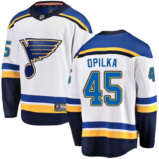 Home>NHL>St. Louis Blues>Luke Opilka>Youth St. Louis Blues #45 Luke Opilka Fanatics Branded White Away Breakaway NHL Jersey