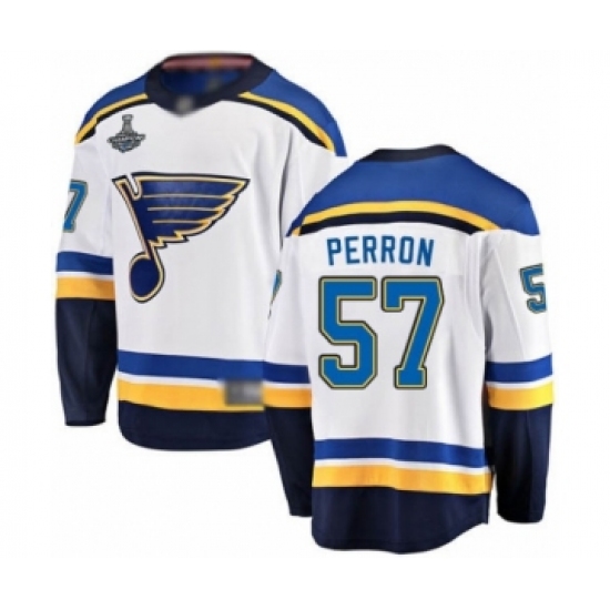 >Youth St. Louis Blues #57 David Perron Fanatics Branded White Away Breakaway 2019 Stanley Cup Champions Hockey Jersey