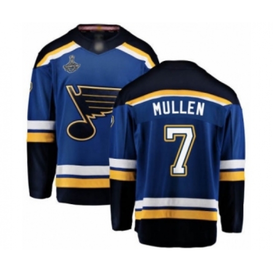 >Youth St. Louis Blues #7 Joe Mullen Fanatics Branded Royal Blue Home Breakaway 2019 Stanley Cup Champions Hockey Jersey