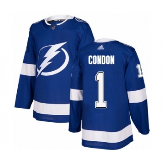 Youth Tampa Bay Lightning #1 Mike Condon Authentic Royal Blue Home Hockey Jersey