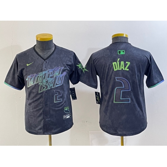 >Youth Tampa Bay Rays #2 Yandy Diaz Charcoal 2024 City Connect Player Number Limited Cool Base Jersey