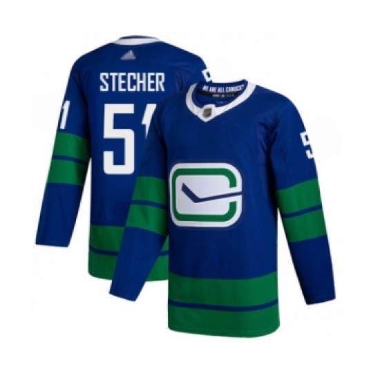 Men's Adidas Vancouver Canucks #51 Troy Stecher Authentic Blue Home NHL Jersey
