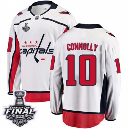 >Youth Washington Capitals #10 Brett Connolly Fanatics Branded White Away Breakaway 2018 Stanley Cup Final NHL Jersey